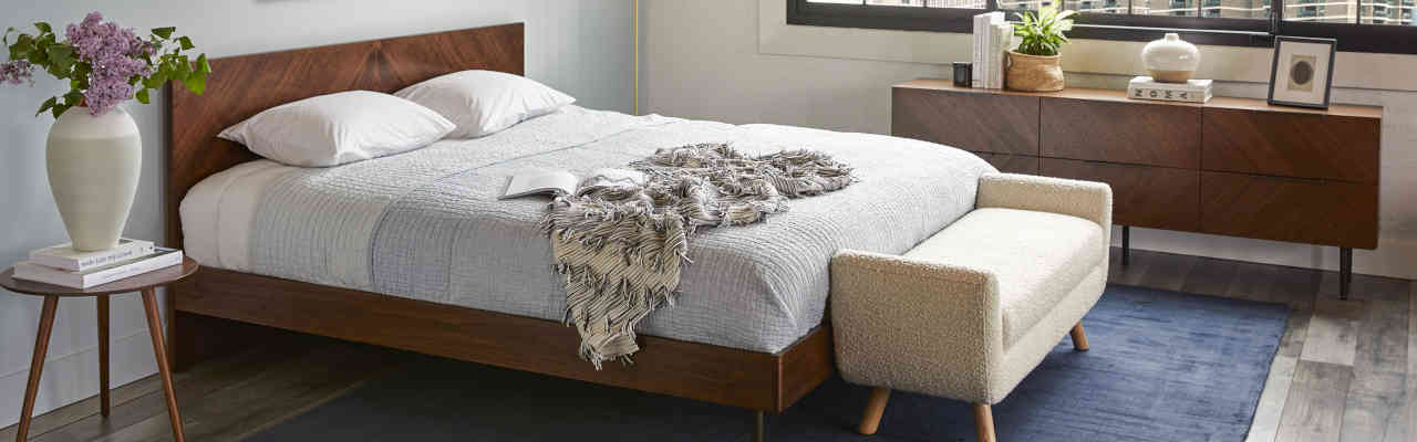 Article beds offer both solid wood and upholstered options in mostly mid-century or modern designs. Their prices are competitive with prices starting around $1000. Most customers describe happy experiences, describing sturdy bed frames. Those with problems mostly mention issues with squeaking connections and some delivery damages.