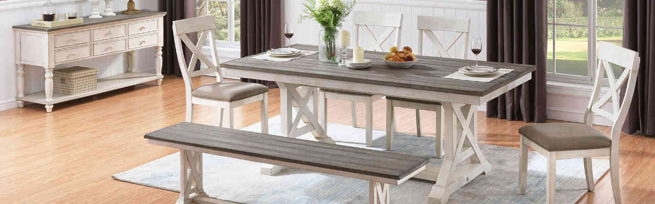 Bernie & Phyl's offers a wide array of traditional and contemporary dining sets and tables. Made often with finished wood in colors like gray, walnut, and cherry, their dining tables start under $300. Customers like the look and initial quality of the dining room furniture, but there are some complaints about delivery and scratch resistance in some cases.