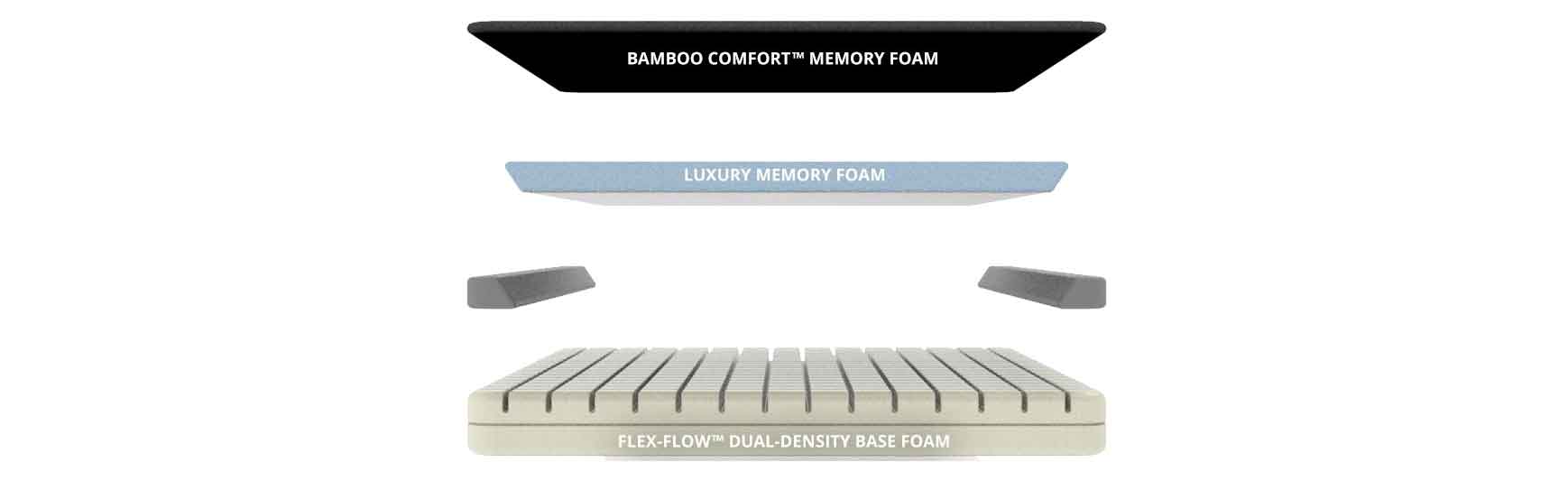 Layer 2: The Bamboo Comfort™ memory foam is hypoallergenic bamboo charcoal infused in memory foam. This naturally cools while also contouring around the body.