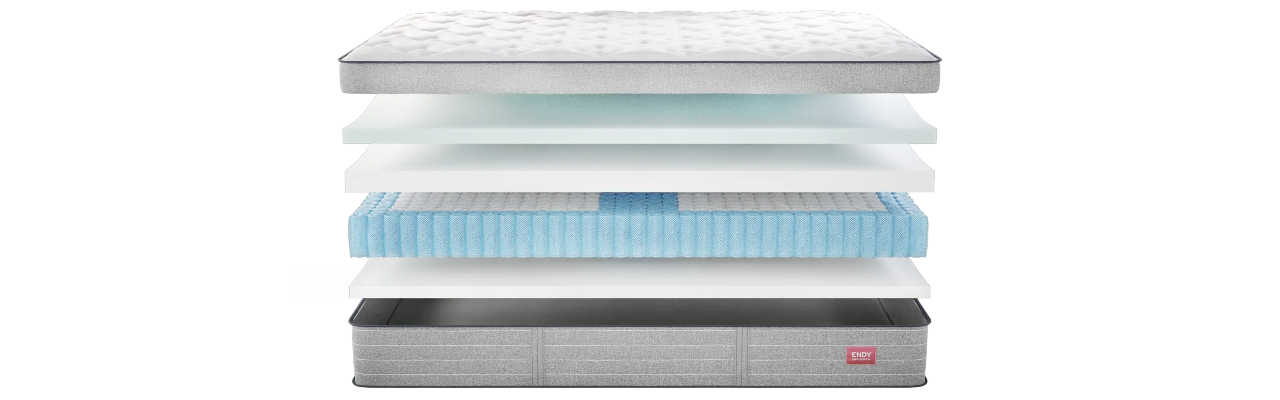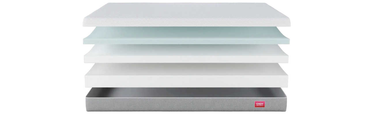 Layer 5: A high-density base foam helps provide the Endy Hybrid mattress with stability and firm support for the layers above.