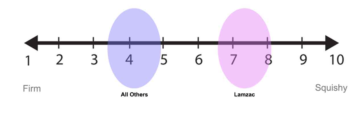 Fatboy's bean bags are less squishy because polystyrene micro-beads are firmer than foam, but are not as firm as traditional bean bag designs with firmer, denser beans. With the exception of the Lamzac, the bean bags have a similar feel and supportiveness.