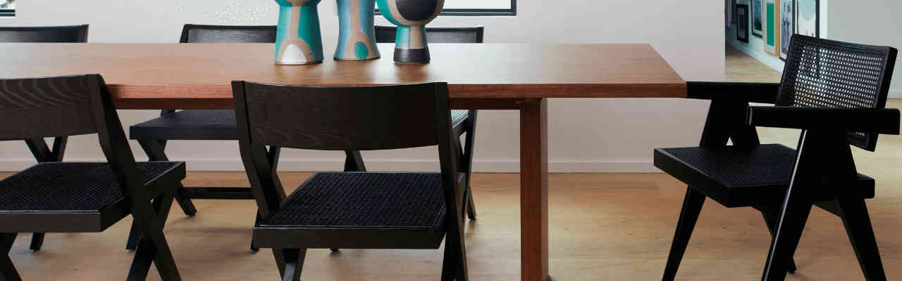 The Prouve chair is an eyecatcher with its mid-century lines but it’s practical and comfortable.