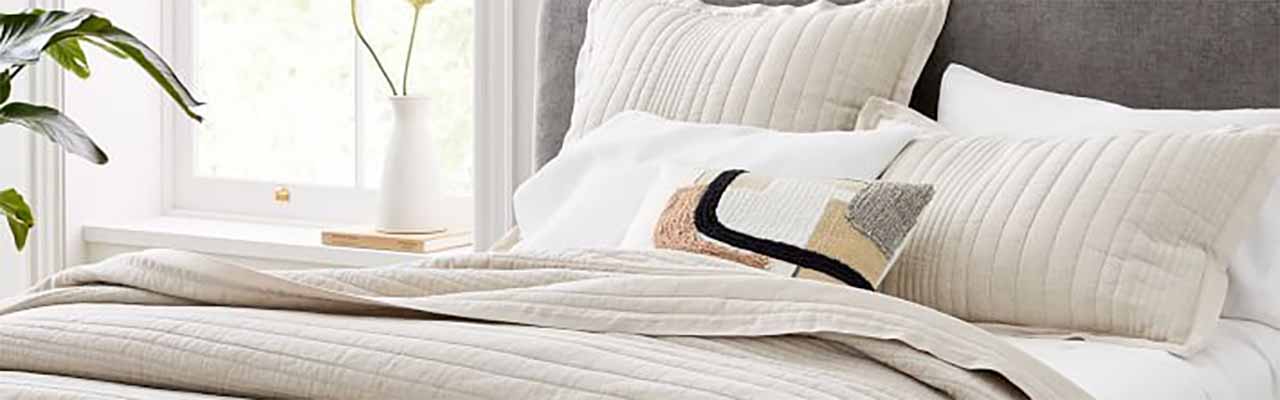 The last popular pick of West Elm shoppers are their bedding options. West Elm carries the full suite of bedding necessities from sheet sets, duvet covers, pillowcases, quilts and coverlets, blankets, and decorative pillows. Many of their bedding options are Fair Trade Certified™ and include materials such as organic cotton, sustainably sourced TENCEL™, Belgian flax linen, and hemp. West Elm's bedding pieces tend to be solid in color or feature a more subdued print. For sheets sets, prices usually start around $90 and can up to $350. West Elm shoppers love the look of their bedding pieces and many enjoy the organic and eco-friendly material options. However, there has been some mixed feedback from shoppers about the perceived quality of their bedding pieces when compared to the price points.