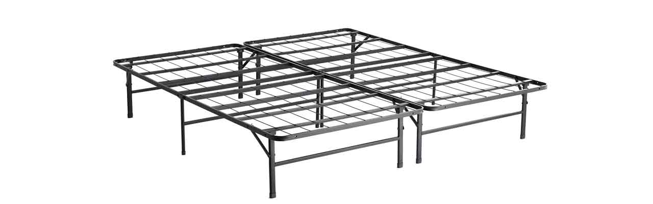 The most affordable option by Nest Bedding for a bed frame also is one of the most practical, with a 14'' height that is perfect for added storage beneath your bed. This frame is sturdy, with 12 legs and 'heavy-duty' latticework, which disperses pressure. Most customers love this, but there were a few complaints about slat width and paint.