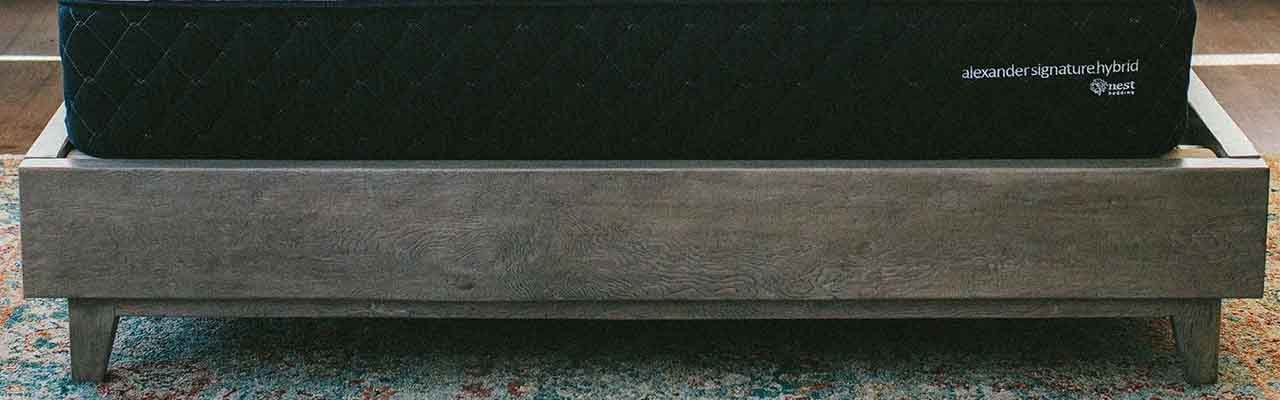 Nest Bedding offers multiple different bed frames and platform beds to choose from -- from a metal frame with storage space below, two types of wooden platform beds, and an upholstered power base with USB connector. Overall, customers really like their bed frames, and especially their platform beds for their designs and styles. We'll go through each of their options below to discuss which may be right for your space.