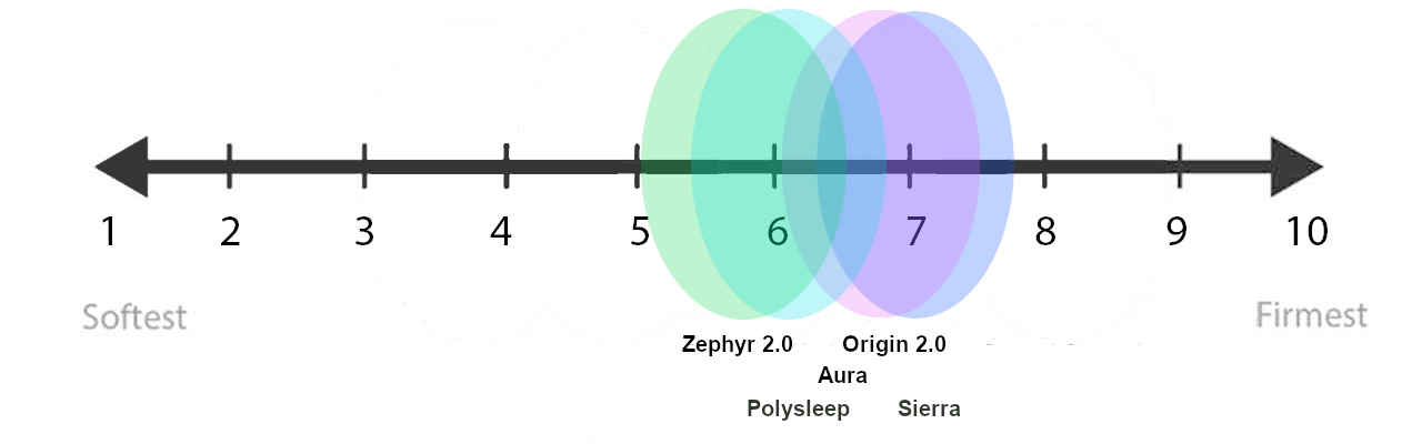 Take a look at the scale above. These mattresses all straddle the medium-firm sweet spot with the Zephyr being the most pressure relieving. However, there are some that describe mattresses being too firm in some cases.