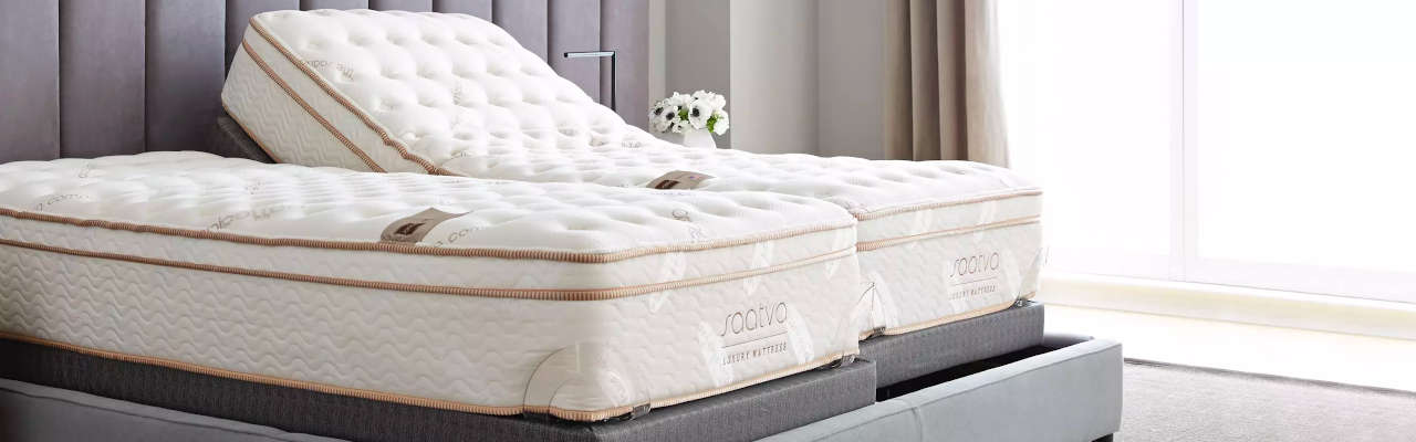 The Saatva Lineal works with multiple mattress options -- including the Saatva Classic. The Solaire Upper-Flex Mattress is one of the best suited options with a split head area for differing head adjustments from your partner, which may help with acid reflux and snoring.