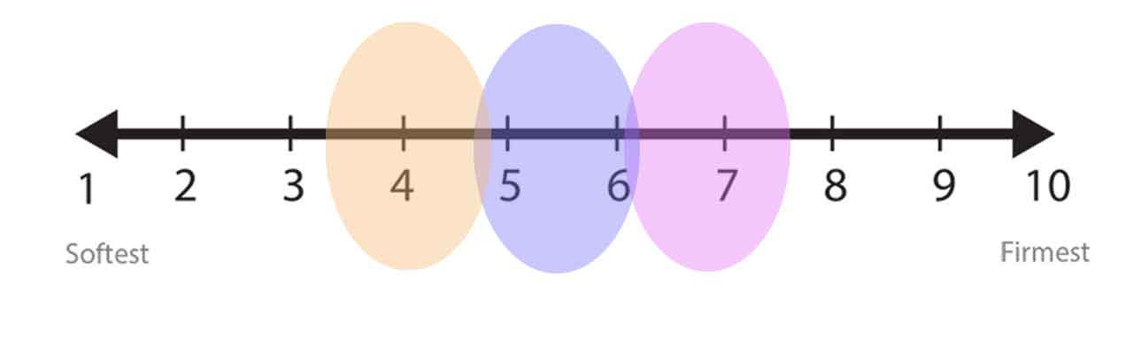 I purchased this mattress two and a half months ago. I saw that people were saying the medium mattress was really firm, but didn't want one that would be too soft. My husband loves the firmness. I am not so sure. At 102 lbs., I hardly put a dent in it. However, I was recently diagnosed with sleep apnea, so I hope things will improve. I'm giving it a 4 until further notice.